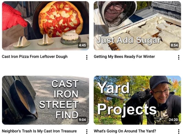 Not planned, but cast iron pans and pizzas are featured in some of the new vids, plus the bees, who I just prepared for winter. Fingers crossed :)